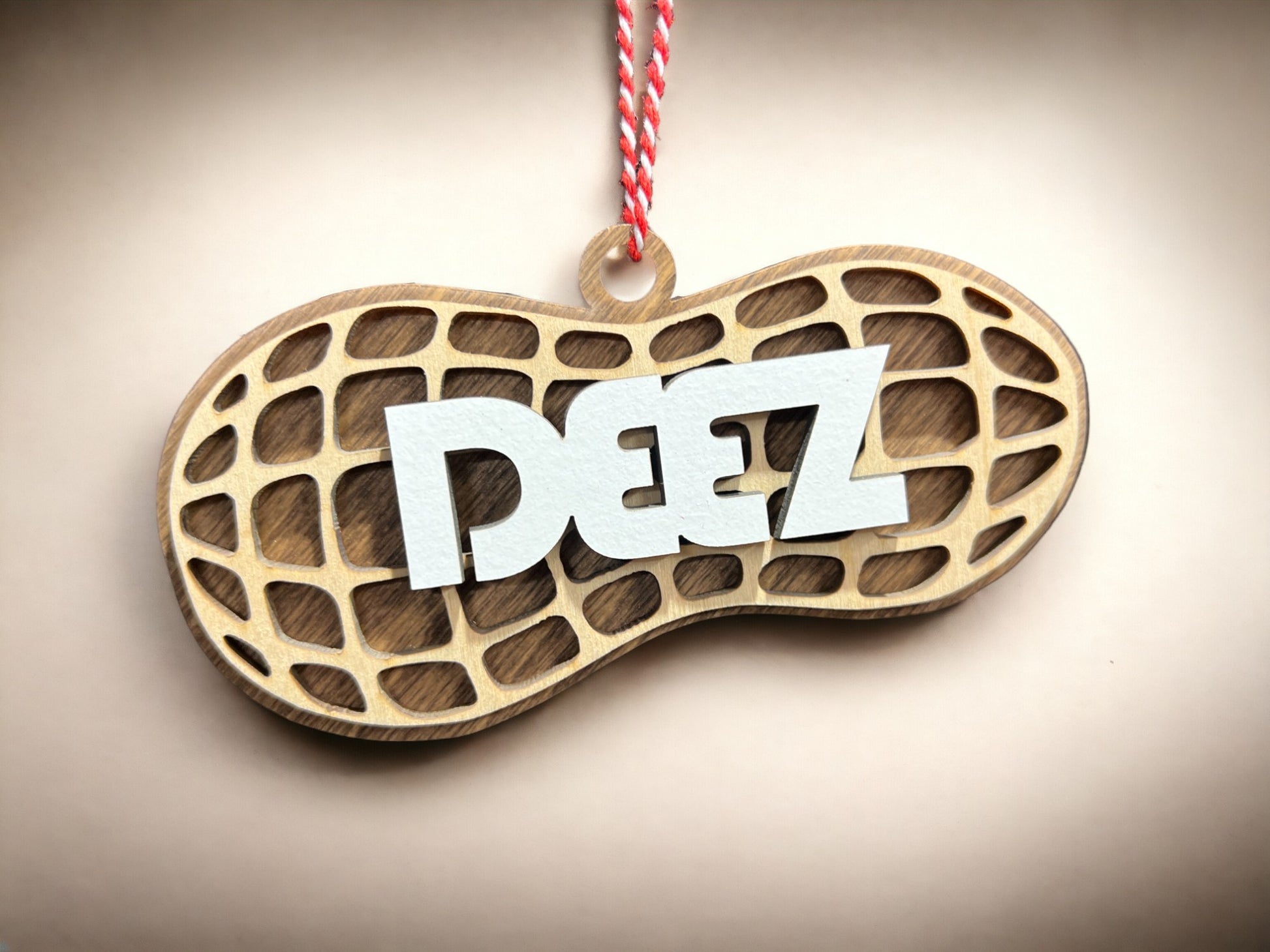 Hang DEEZ NUTS anywhere you want. 3 layer ornament approximately 5"long.