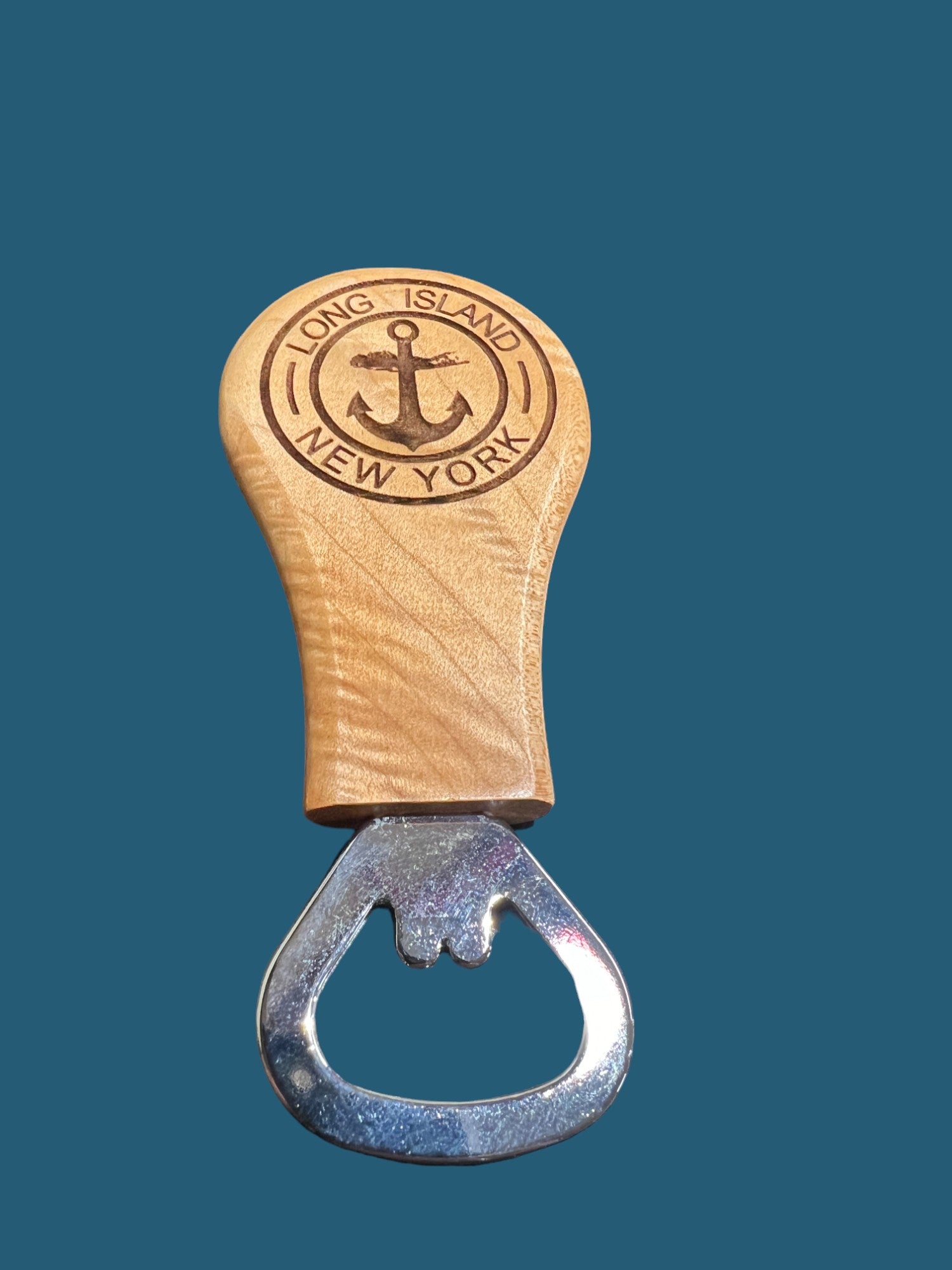 Maple bottle opener features a deep laser engraved Long Island Anchor logo and an internal magnet to keep on the front of your refrigerator. Measures approximately 4.5" long x 1.5" wide. FREE SHIPPING