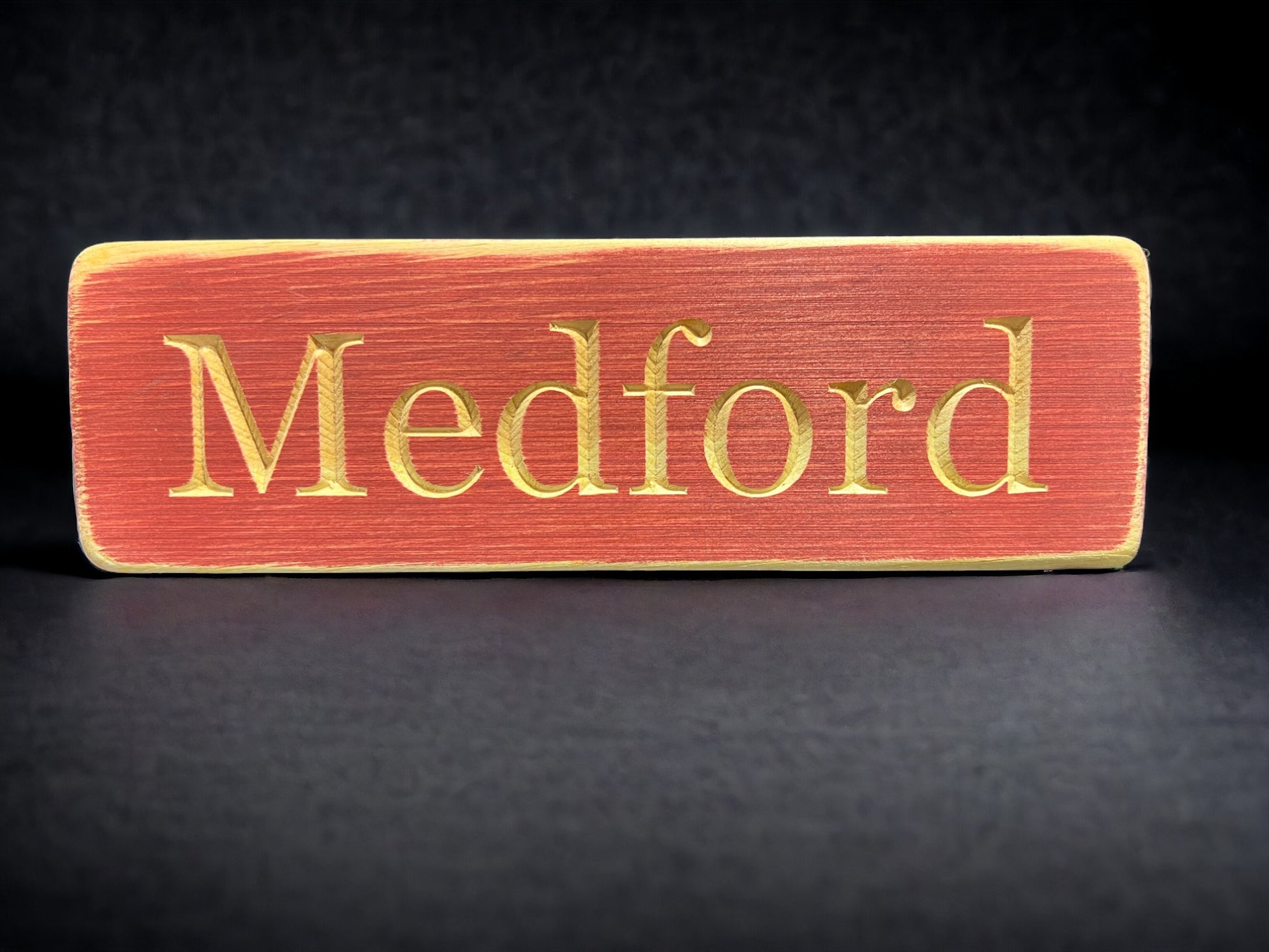 Carved Medford distressed wood sign. Includes sawtooth hanger on back. FREE SHIPPING